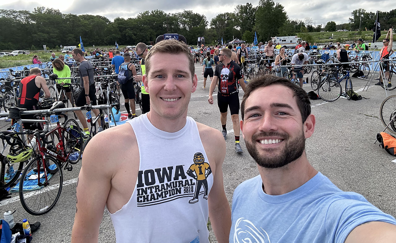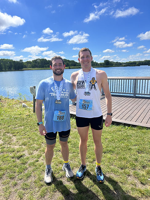 Colton Schnetzer and Dyllan Frahm, both therapists at the Johnston clinic, did the sprint triathlon in Ames at Lake Ada Hayden which was 750 meter swim, 15 mile bike, and 5k run.